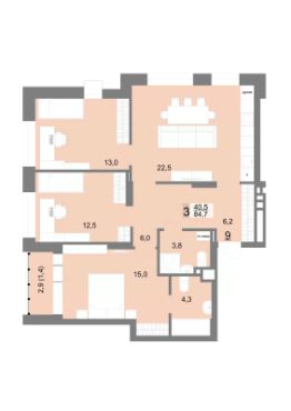 Общая площадь84,7 м²