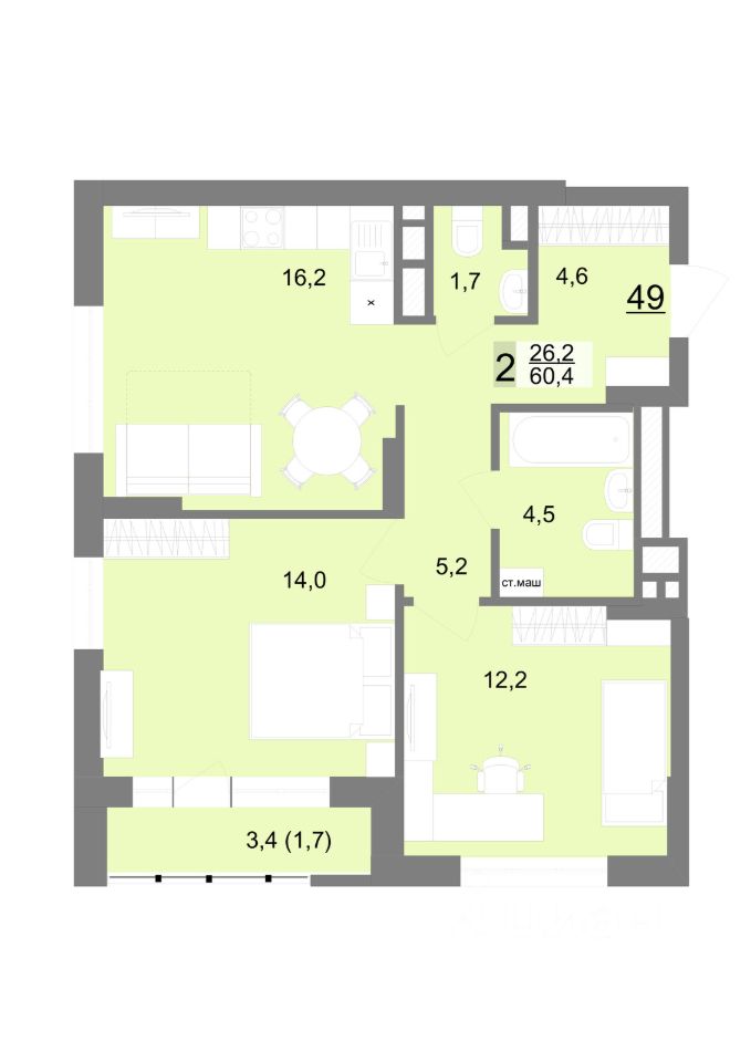 Общая площадь60,1 м²