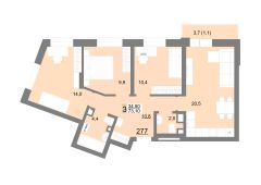 Продаётся 3-комнатная квартира в строящемся доме (Секция С1), срок сдачи: III-кв. 2026, общей площадью 73.1 кв.м., на 11 этаже. Многоэтажные жилые дома по ул. Металлургов от ГК "Астра". 1 очередь строительства