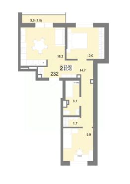 Общая площадь61,4 м²