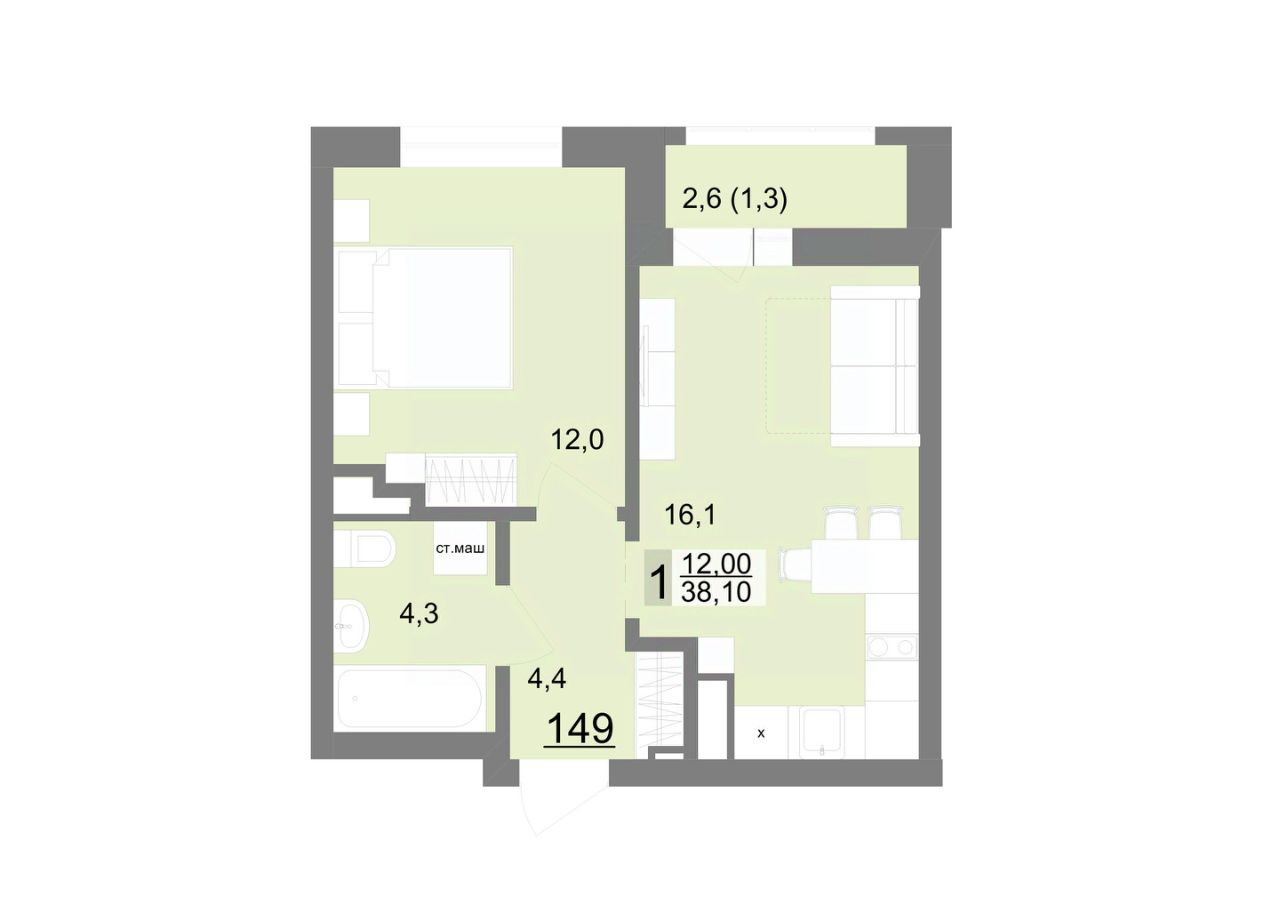 Продаётся 1-комнатная квартира в строящемся доме (Секция С1), срок сдачи: III-кв. 2026, общей площадью 38.1 кв.м., на 10 этаже. Многоэтажные жилые дома по ул. Металлургов от ГК "Астра". 1 очередь строительства