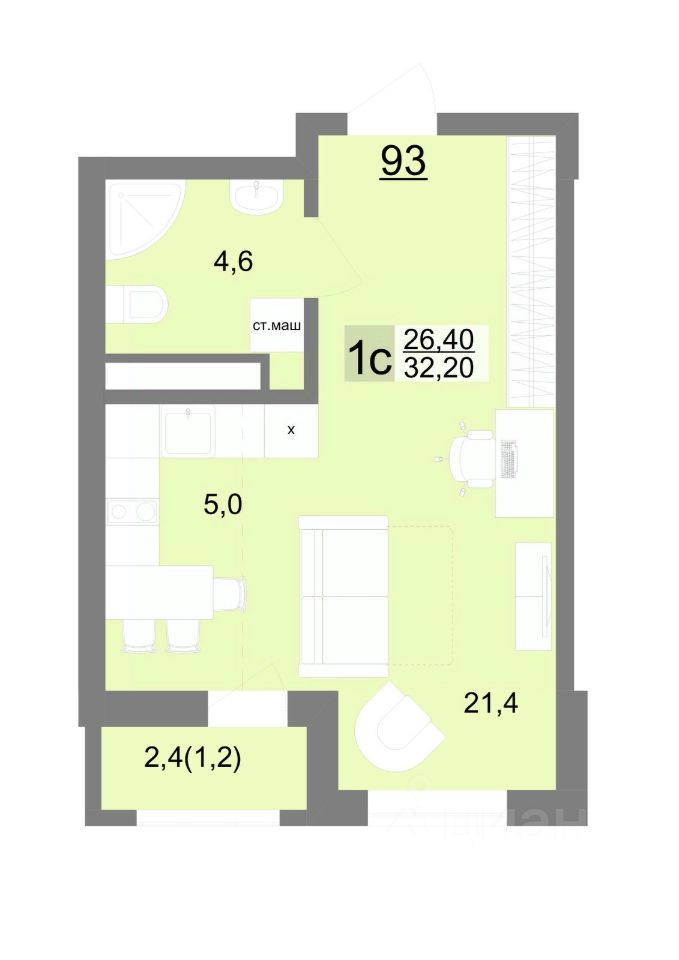 Общая площадь32,2 м²
