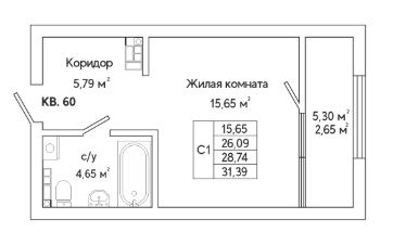 Продаётся 1-комнатная квартира в сданном доме (Яскина, 14/3 (Дом 3 3 этап)), срок сдачи: III-кв. 2025, общей площадью 31.39 кв.м., на 7 этаже. Система "умный" дом