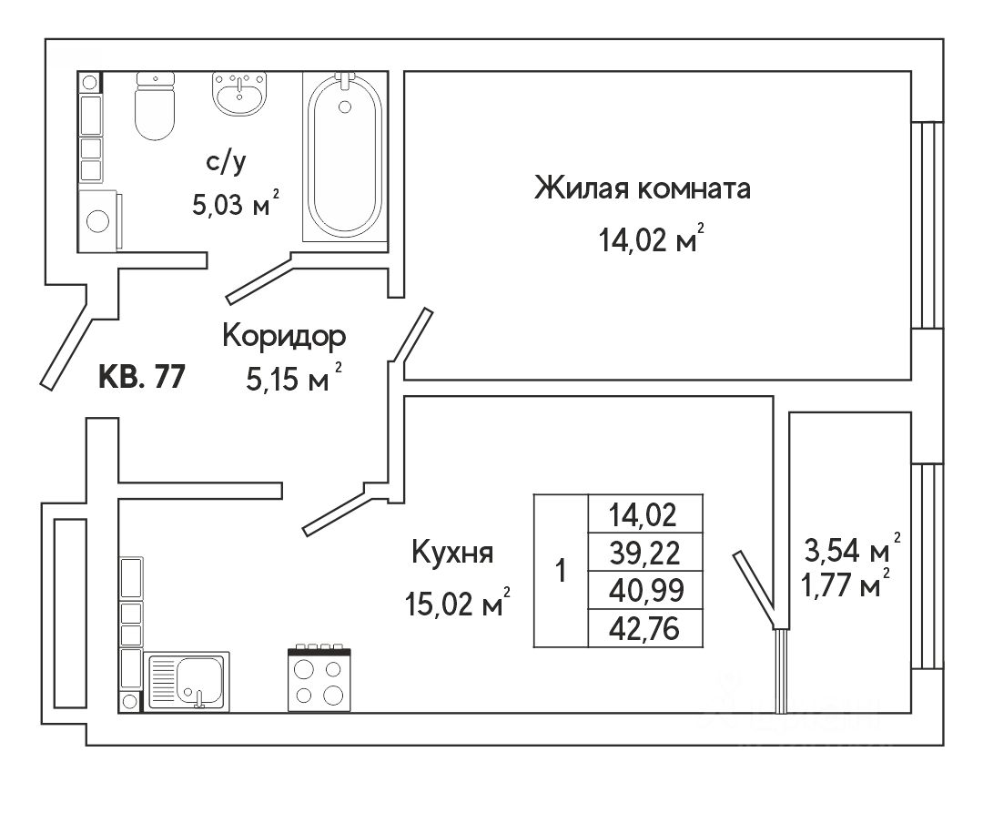 Продаётся 1-комнатная квартира в сданном доме (Яскина, 14/3 (Дом 3 3 этап)), срок сдачи: III-кв. 2025, общей площадью 42.76 кв.м., на 8 этаже. Система "умный" дом
