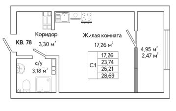 Продаётся 1-комнатная квартира в сданном доме (Яскина, 14/3 (Дом 3 3 этап)), срок сдачи: III-кв. 2025, общей площадью 28.69 кв.м., на 8 этаже. Система "умный" дом