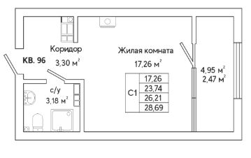 Продаётся 1-комнатная квартира в сданном доме (Яскина, 14/3 (Дом 3 3 этап)), срок сдачи: III-кв. 2025, общей площадью 28.69 кв.м., на 10 этаже. Система "умный" дом