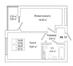 Продаётся 1-комнатная квартира в сданном доме (Яскина, 14/3 (Дом 3 3 этап)), срок сдачи: III-кв. 2025, общей площадью 39.47 кв.м., на 12 этаже. Система "умный" дом