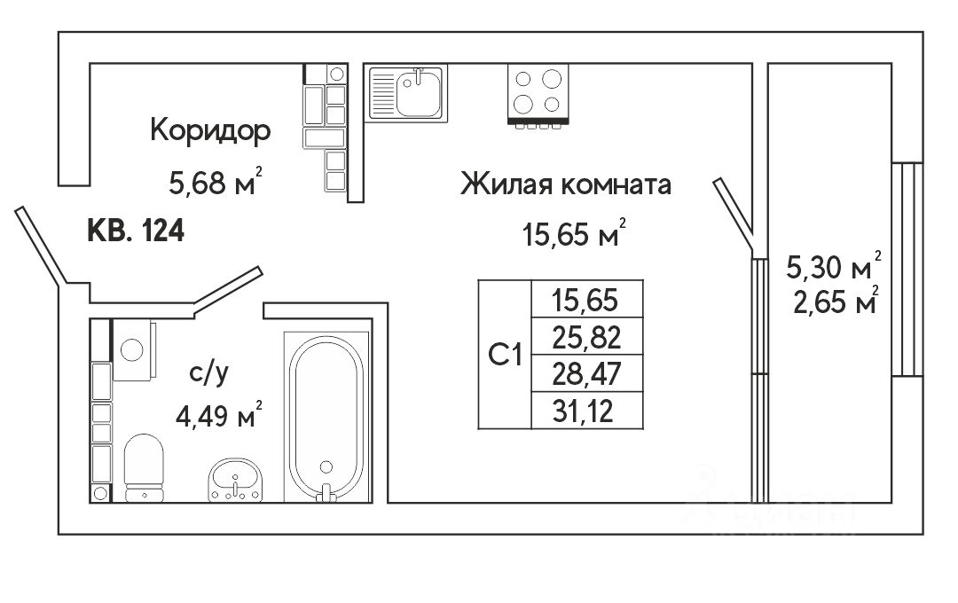 Продаётся 1-комнатная квартира в сданном доме (Яскина, 14/3 (Дом 3 3 этап)), срок сдачи: III-кв. 2025, общей площадью 31.12 кв.м., на 14 этаже. Система "умный" дом