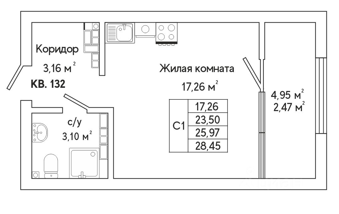 Продаётся 1-комнатная квартира в сданном доме (Яскина, 14/3 (Дом 3 3 этап)), срок сдачи: III-кв. 2025, общей площадью 28.45 кв.м., на 14 этаже. Система "умный" дом