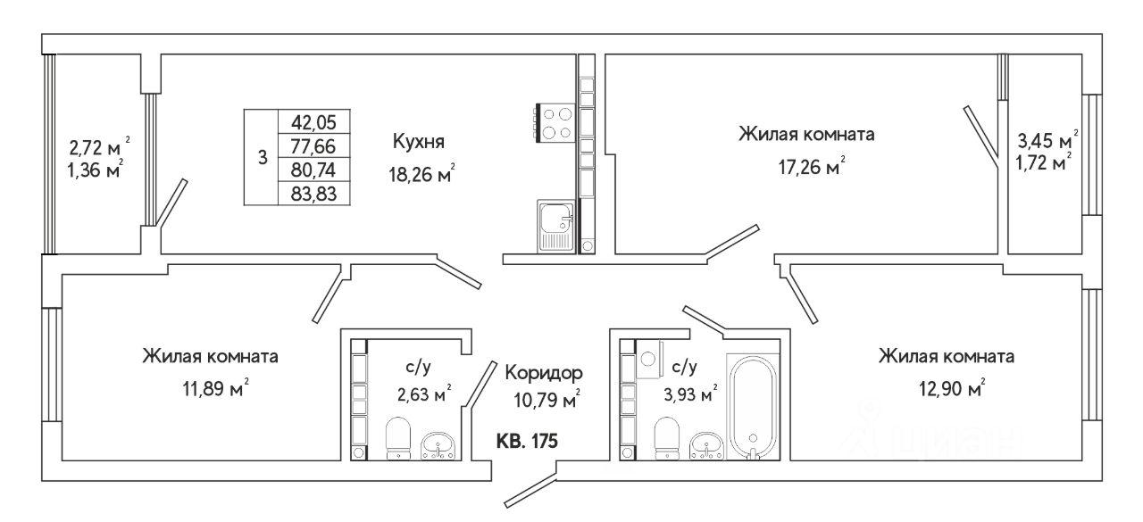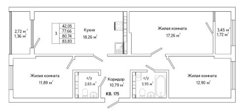 Продаётся 3-комнатная квартира в сданном доме (Яскина, 14/3 (Дом 3 3 этап)), срок сдачи: III-кв. 2025, общей площадью 82.47 кв.м., на 19 этаже. Система "умный" дом
