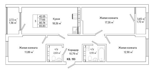 Продаётся 3-комнатная квартира в сданном доме (Яскина, 14/3 (Дом 3 3 этап)), срок сдачи: III-кв. 2025, общей площадью 82.47 кв.м., на 21 этаже. Система "умный" дом