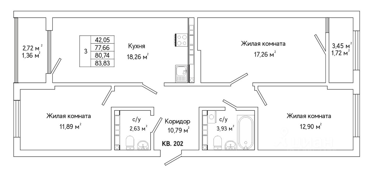 Продаётся 3-комнатная квартира в сданном доме (Яскина, 14/3 (Дом 3 3 этап)), срок сдачи: III-кв. 2025, общей площадью 82.47 кв.м., на 22 этаже. Система "умный" дом