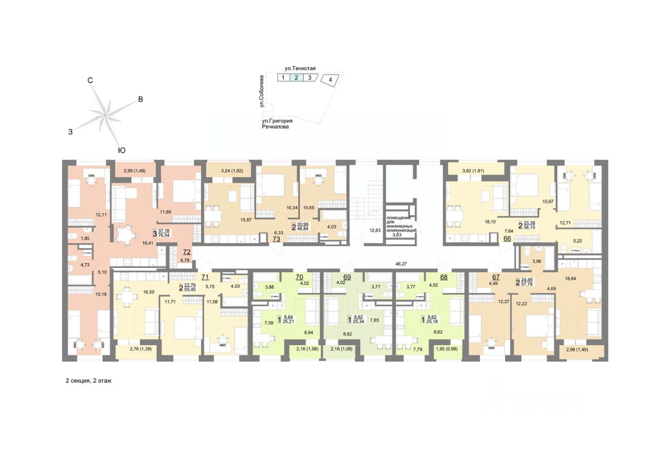 Семейный квартал "На Тенистой" будет состоять из 7 домов переменной этажности и паркинга. 1-я и 2-я очереди уже построены, сейчас активно возводится 3-я очередь и готовится к старту 4-ая очередь квартала.