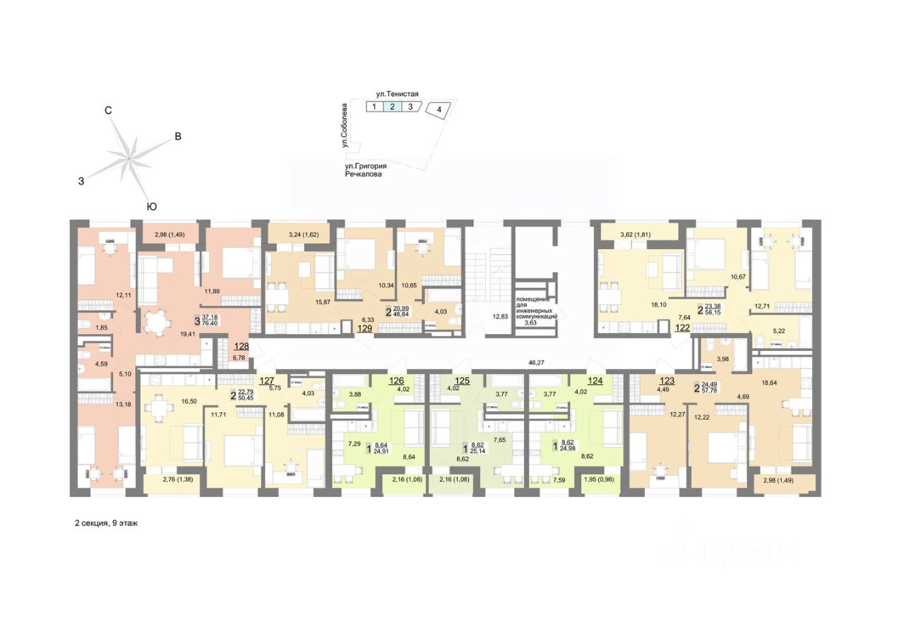 Семейный квартал "На Тенистой" будет состоять из 7 домов переменной этажности и паркинга. 1-я и 2-я очереди уже построены, сейчас активно возводится 3-я очередь и готовится к старту 4-ая очередь квартала.