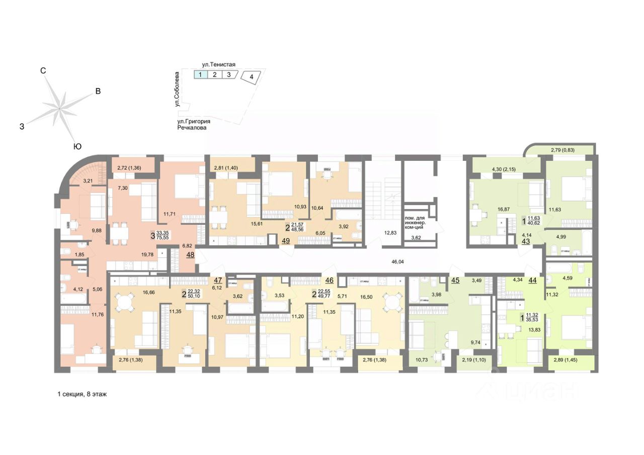 Семейный квартал "На Тенистой" будет состоять из 7 домов переменной этажности и паркинга. 1-я и 2-я очереди уже построены, сейчас активно возводится 3-я очередь и готовится к старту 4-ая очередь квартала. Квартал расположен на Широкой речке в самом молодом и современном районе - Академический, на пересечении улиц Тенистая-Краснолесья-Соболева. Вы сможете пользоваться преимуществами сразу нескольких районов: Широкая речка, Академический, Верх-Исетский и Юго-Западный! 30 минут до центра города на машине, 9 минут до Объездной дороги, если хочется выехать на природу. В шаговой доступности есть несколько школ, детских садов и спортивных секций. А еще один детский сад на 350 мест уже построен на территории самого квартала. Закрытый большой двор с ландшафтным дизайном Просторный двор, укрытый от городской суеты стенами домов, объединит все очереди жилого квартала "На Тенистой". К завершению строительства общая площадь двора составит впечатляющие 32 тыс. м², предоставляя достаточно места для отдыха и активности на любой вкус. Двор, разделят на рекреационные зоны по возрастам. Будут площадки для малышей и подростков с безопасным покрытием, зоны ворк-аута для предпочитающих здоровый образ жизни, прогулочные дорожки для бесед с друзьями или соседями. Живые зелёные изгороди, словно природная завеса, обеспечат чувство уединённости, защищая жителей первых этажей от посторонних взглядов. Уютный сад с плитняковыми тропинками, изящными перголами и удобными столиками для перекусов на свежем воздухе станет идеальным местом для тёплых семейных вечеров и дружеских встреч. Вдоль прогулочных дорожек установят невысокие уличные фонари, которые создадут атмосферу тепла и уюта. По всему периметру двора появится велодорожка, огибающая игровые зоны. Она станет любимым маршрутом для велосипедных прогулок. Игровые площадки покроют травмобезопасной резиновой крошкой нежных оттенков, подобранных специально для привлечения внимания детей. Разнообразие малых архитектурных форм порадует каждого ребёнка: карусели, качели-гнездышки, батуты, тарзанки и игровые комплексы обеспечат активный досуг и весёлое времяпровождение. Для начинающих футболистов разместится мини-футбольное поле с качественным искусственным газоном, расположенное таким образом, что шум и радость детских игр не потревожат ваш покой. Здесь ваши дети смогут организовывать настоящие турниры и приглашать друзей на матчи, наслаждаясь каждым моментом активного отдыха. Во дворе жилого комплекса "На Тенистой" каждый найдёт занятие по душе! Безопасность и комфорт Безопасность - важное преимущество эко-квартала. Вход на территорию осуществляется с помощью Face ID или через мобильное приложение. Для вашего удобства предусмотрено три выхода с подземного паркинга. На территории квартала будет круглосуточное видеонаблюдение, обеспечивающее безопасность вам и вашим маленьким исследователям в каждом уголке двора. Эстетика внутренних пространств Входные группы будут оформлены в соответствии с архитектурной концепцией всего квартала