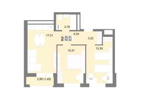 Общая площадь55,52 м²