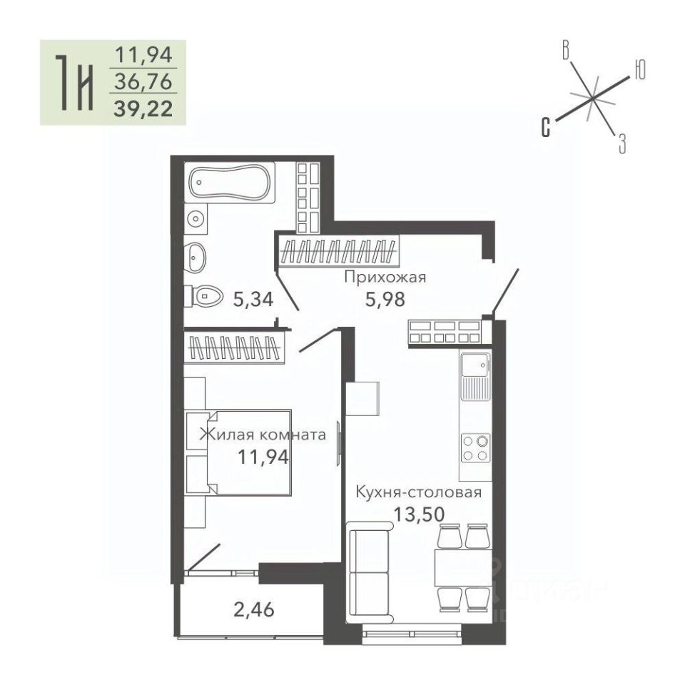 Общая площадь39,22 м²