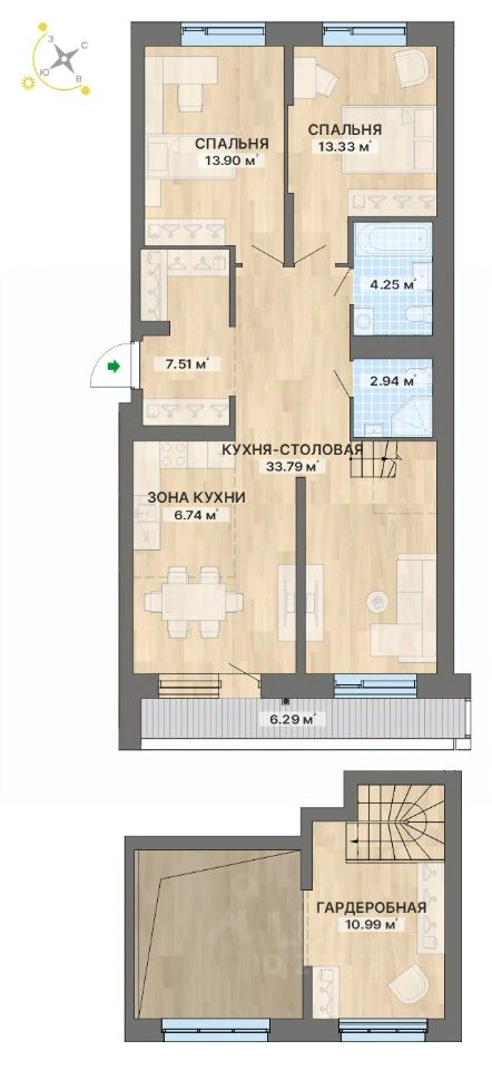 Архитекторы проекта проработали каждую планировку, уделив особое внимание эргономике помещений и их освещённости. Покупателей ждут квартиры с террасами на нижних и верхних этажах, квартиры с лоджиями. Для любителей простора есть планировки со вторым светом.