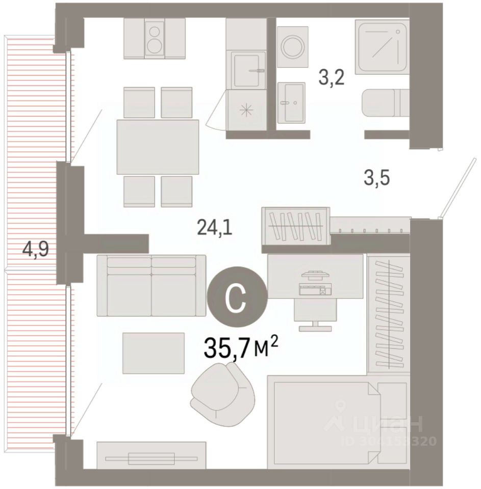 Студия в Бруснике в Академическом. Особенности планировки: предчистовая отделка.