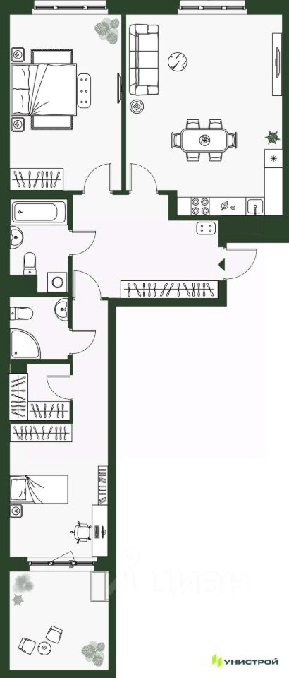 Унистрой—федеральная девелоперская компания «Унистрой», реализующая проекты в Казани, республиках Татарстан и Башкортостан, Ленинградской и Самарской областях. Компания работает на рынке с 1996 года и специализируется на развитии жилой и коммерческой недв...