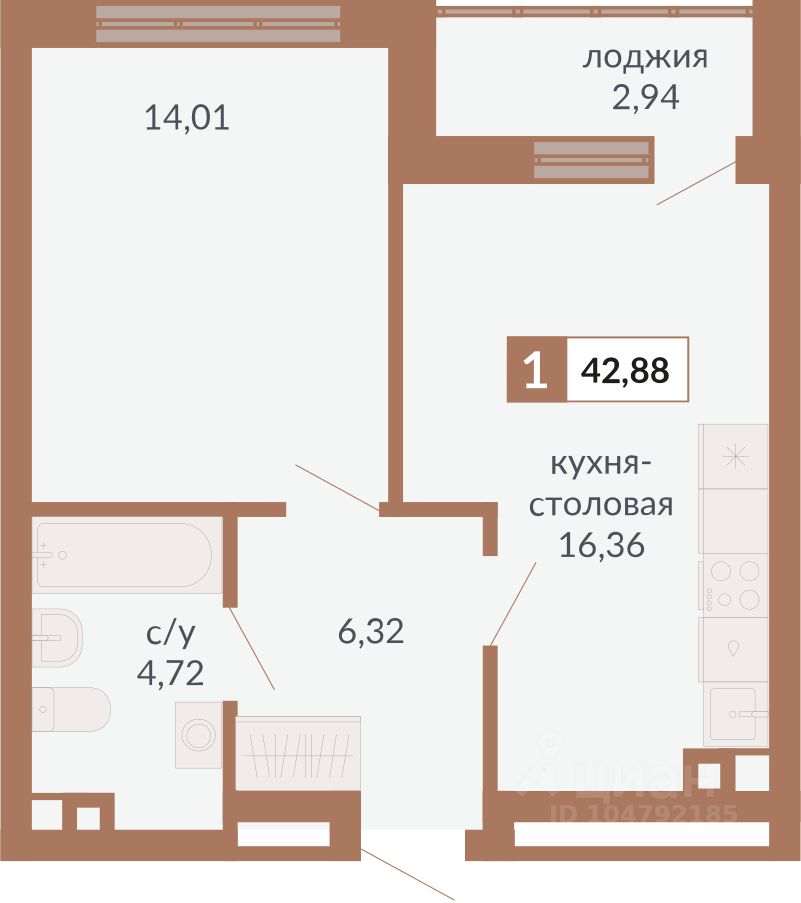 Продается Однокомнатная квартира в новом жилом квартале "Видный" в районе ВИЗ. Квартира находится на 2 этаже, общей площадью 42.88. Строительство разделено на две очереди.