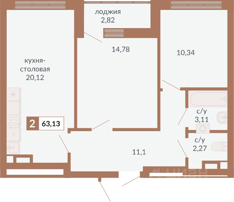 Продается Двухкомнатная квартира в новом жилом квартале "Видный" в районе ВИЗ. Квартира находится на 5 этаже, общей площадью 63.13. Строительство разделено на две очереди.