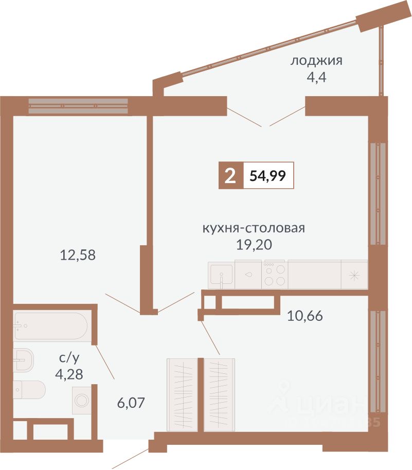 Продается Двухкомнатная квартира в новом жилом квартале "Видный" в районе ВИЗ. Квартира находится на 13 этаже, общей площадью 54.99. Строительство разделено на две очереди.