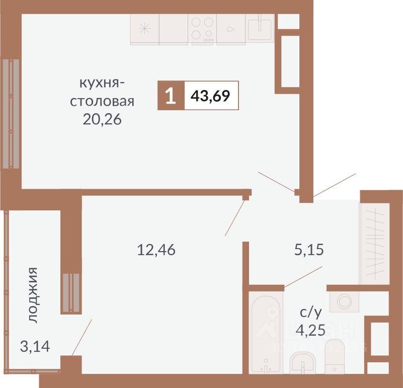 Продается Однокомнатная квартира в новом жилом квартале "Видный" в районе ВИЗ. Квартира находится на 15 этаже, общей площадью 43.69. Строительство разделено на две очереди.