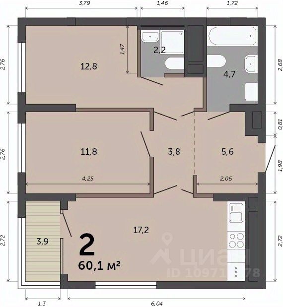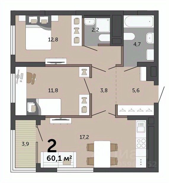 Продаётся 2-комнатная квартира в строящемся доме (Дом 2 этап 3), срок сдачи: I-кв. 2027, общей площадью 60.1 кв.м., на 21 этаже. "Парк Победы" состоит из трёх многосекционных домов переменной этажности, подземного паркинга и коммерческих помещений. Секции домов образуют закрытые дворы, которые объединены арками.