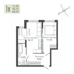 Общая площадь43,15 м²
