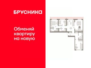 Квартира с кухней-гостиной и тремя спальнями в Бруснике в Академическом. Особенности планировки: предчистовая отделка, разнесённые спальни, терраса на крыше.