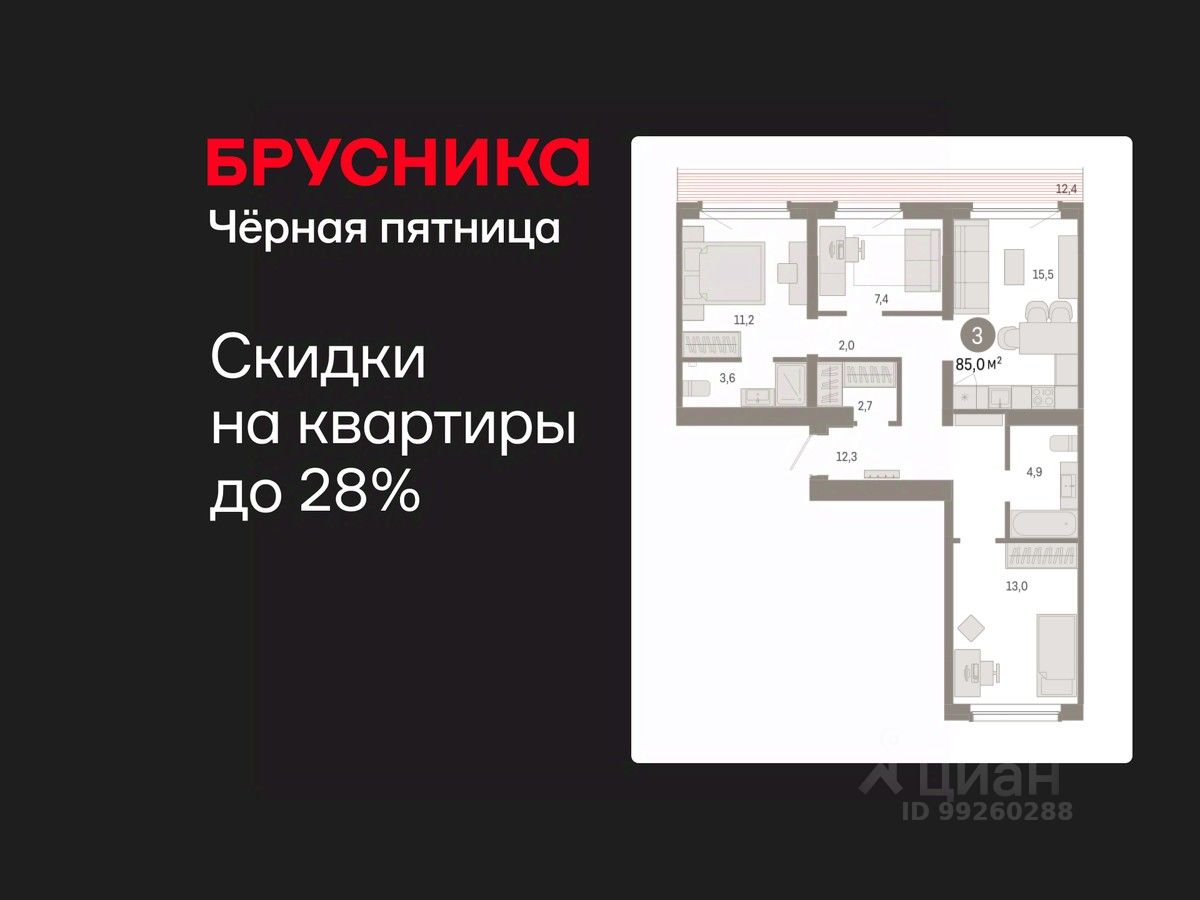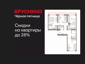 Квартира с кухней-гостиной и двумя спальнями в Бруснике в Академическом. Особенности планировки: второй санузел, гардеробная, рабочий кабинет, вид во двор, разнесённые спальни, предчистовая отделка, мастер-спальня, терраса на крыше.