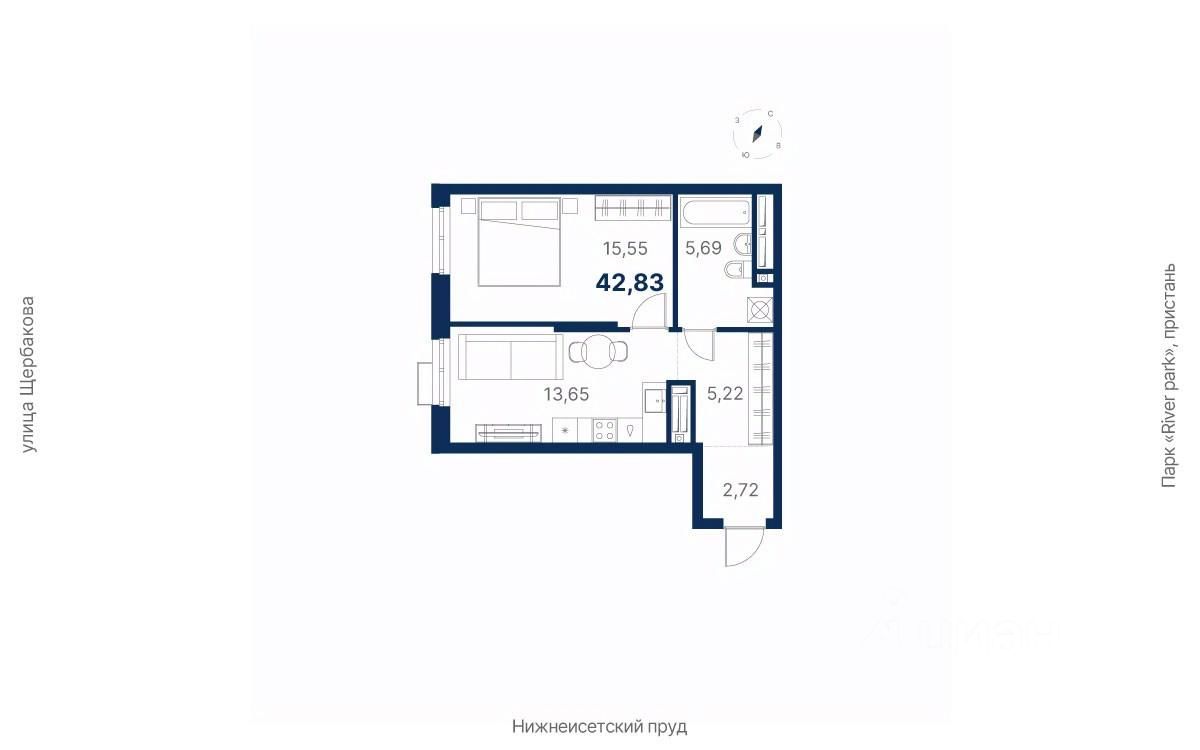Общая площадь42,83 м²