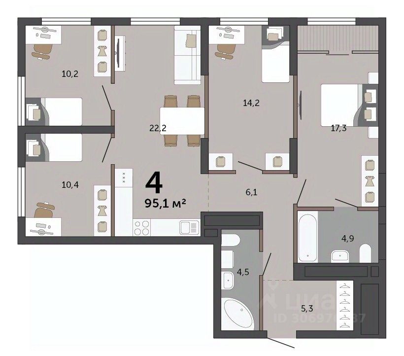 Продаётся 4-комнатная квартира в строящемся доме (Дом 2 этап 3), срок сдачи: I-кв. 2027, общей площадью 95.1 кв.м., на 7 этаже. "Парк Победы" состоит из трёх многосекционных домов переменной этажности, подземного паркинга и коммерческих помещений. Секции домов образуют закрытые дворы, которые объединены арками.