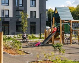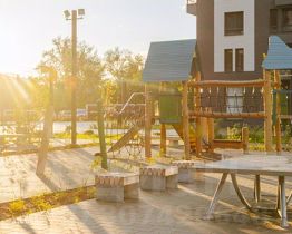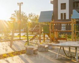 Проект включает шесть домов и многоуровневый паркинг. На первых этажах открываются кафе, магазины и полезные сервисы. А в уютных дворах-парках есть детские и спортивные площадки.