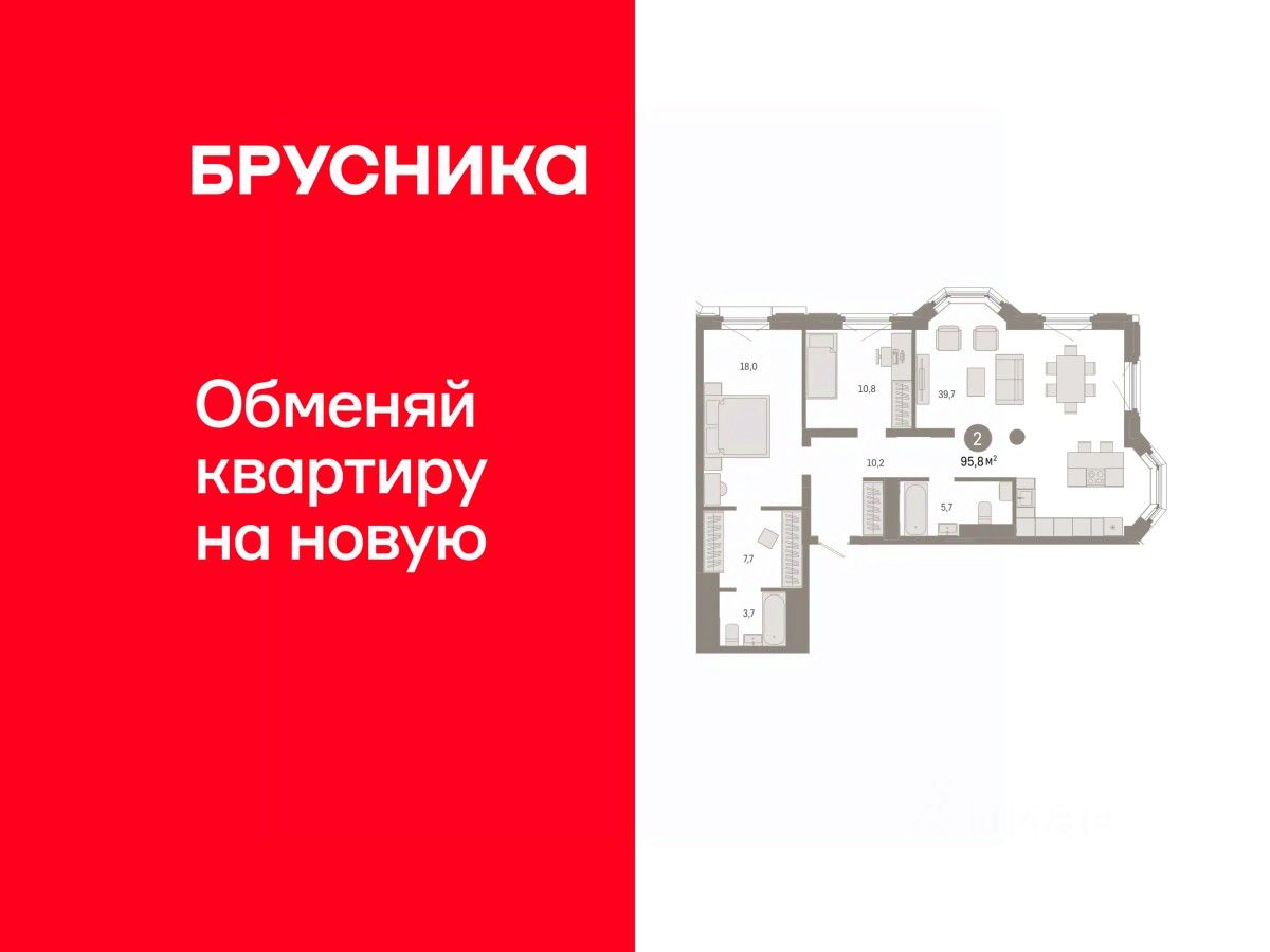 Квартира с кухней-гостиной и двумя спальнями в квартале "На Некрасова". Особенности планировки: предчистовая отделка.