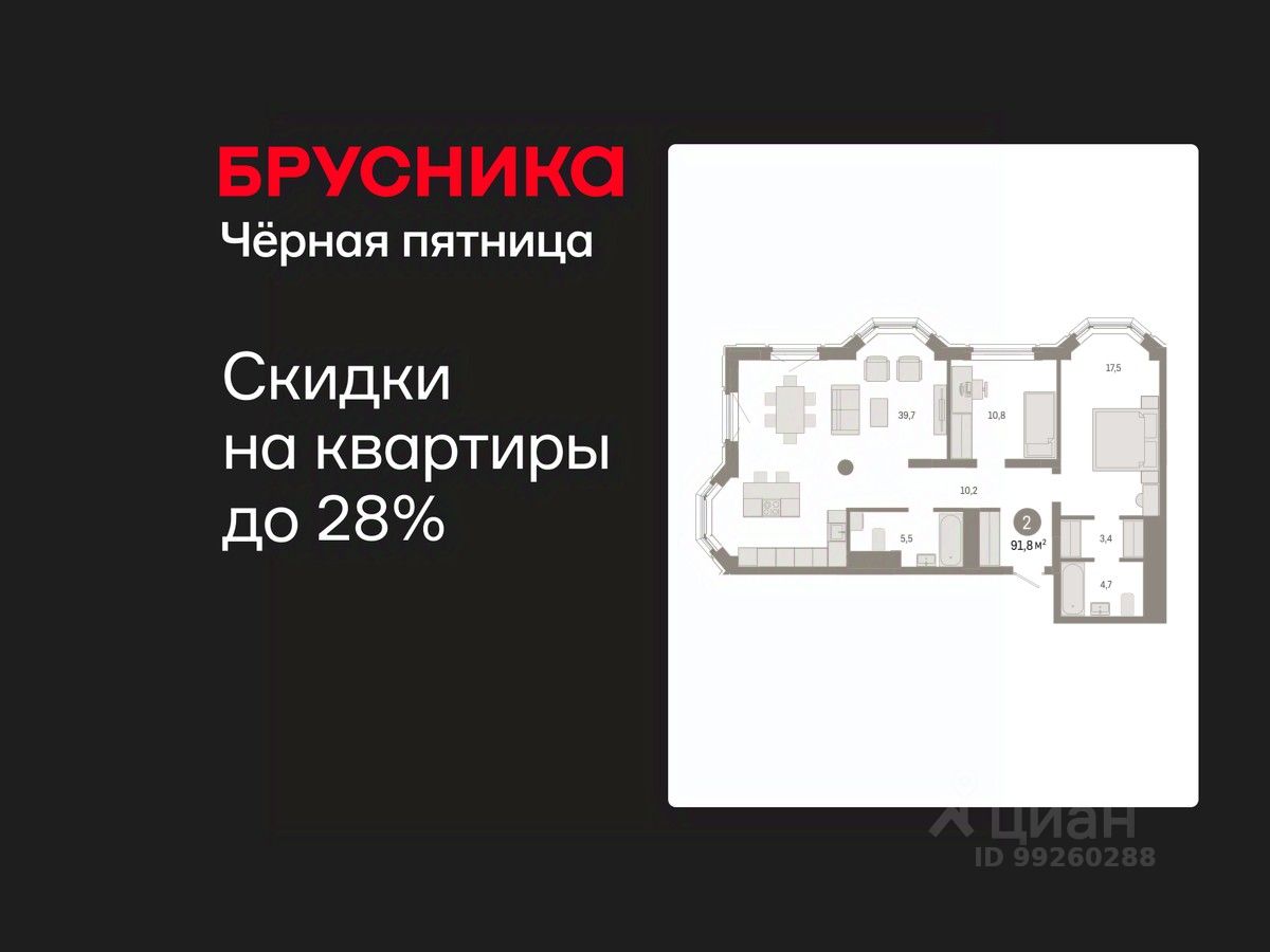 Квартира с кухней-гостиной и двумя спальнями в квартале "На Некрасова". Особенности планировки: второй санузел, предчистовая отделка, мастер-спальня.
