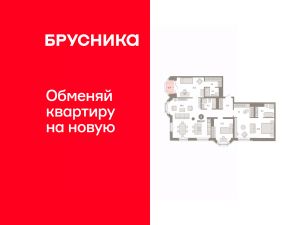 Квартира с кухней-гостиной и тремя спальнями в квартале "На Некрасова". Особенности планировки: предчистовая отделка, разнесённые спальни.