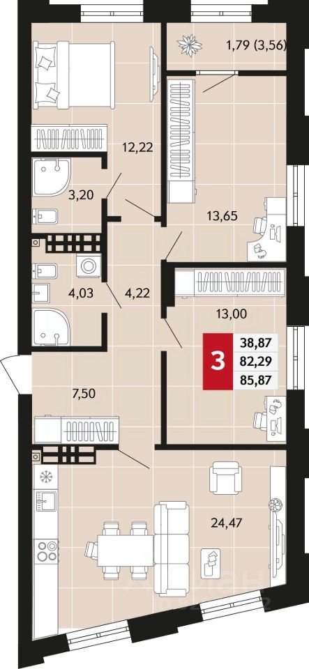 Общая площадь85,87 м²
