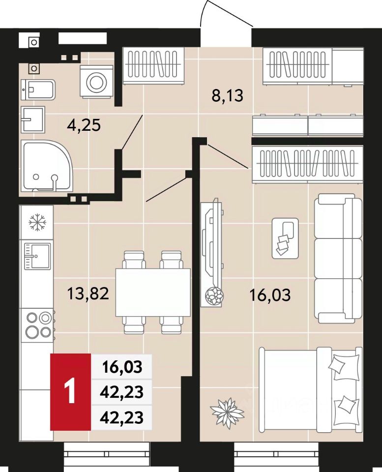 Общая площадь42,23 м²