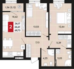 Общая площадь69,73 м²