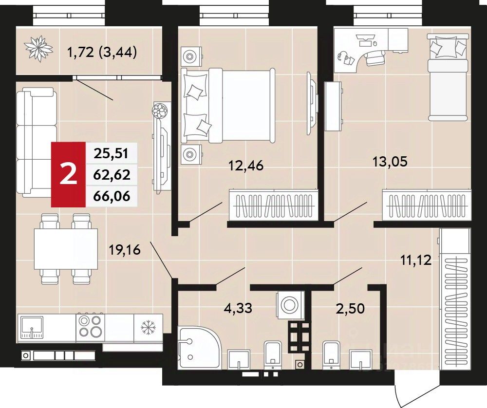 Общая площадь66,06 м²