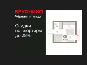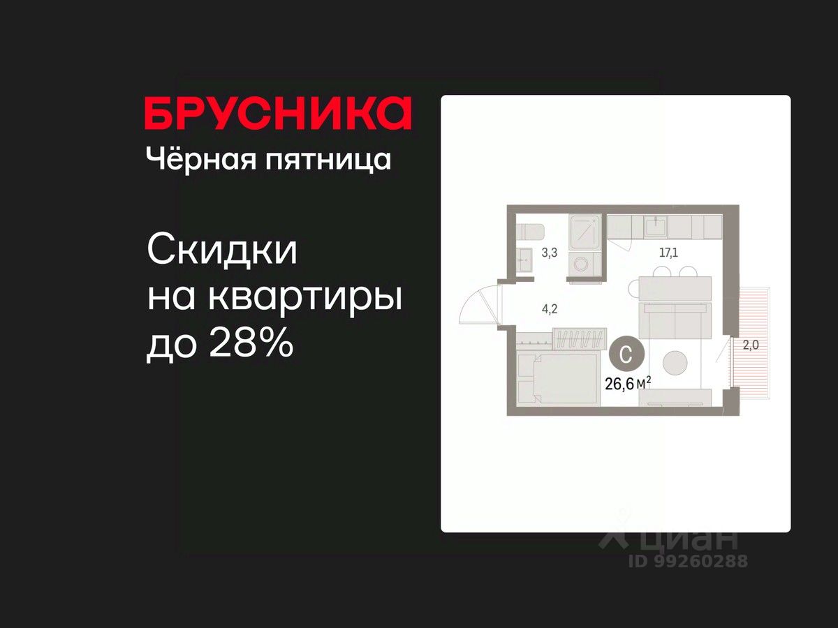 Студия в Бруснике в Академическом. Особенности планировки: вид во двор, предчистовая отделка, балкон.