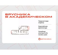 Квартира с кухней-гостиной и двумя спальнями в Бруснике в Академическом. Особенности планировки: окна на две стороны, вид во двор, разнесённые спальни, предчистовая отделка, мастер-спальня, балкон.