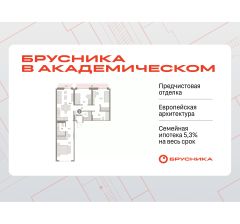 Квартира с кухней-гостиной и тремя спальнями в Бруснике в Академическом. Особенности планировки: окна на две стороны, гардеробная, вид во двор, разнесённые спальни, предчистовая отделка, мастер-спальня, балкон.