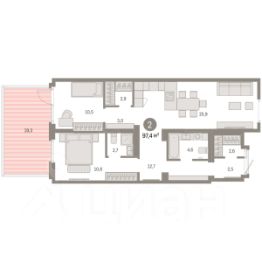 Квартира с кухней-гостиной и двумя спальнями в Бруснике в Академическом. Особенности планировки: окна на две стороны, гардеробная, окна в пол, вид во двор, отдельный вход, предчистовая отделка, мастер-спальня, терраса.
