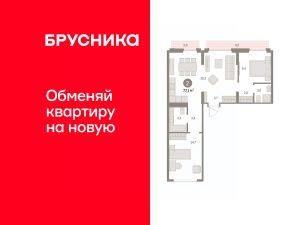 Квартира с кухней-гостиной и двумя спальнями в Бруснике в Академическом. Особенности планировки: балкон, вид во двор, гардеробная, мастер-спальня, окна на две стороны, предчистовая отделка, разнесённые спальни.