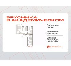 Квартира с кухней-гостиной и тремя спальнями в Бруснике в Академическом. Особенности планировки: окна на две стороны, гардеробная, вид во двор, разнесённые спальни, предчистовая отделка, мастер-спальня, балкон.