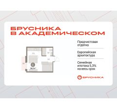 Студия в Бруснике в Академическом. Особенности планировки: вид во двор, предчистовая отделка, балкон.