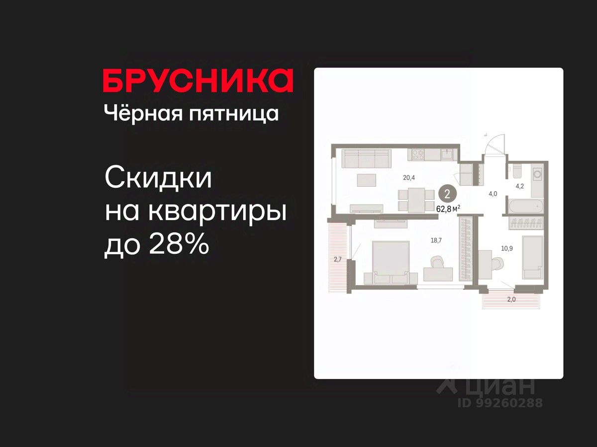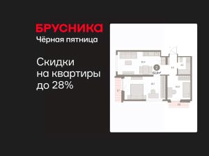 Квартира с кухней-гостиной и двумя спальнями в Бруснике в Академическом. Особенности планировки: лоджия, предчистовая отделка, балкон.
